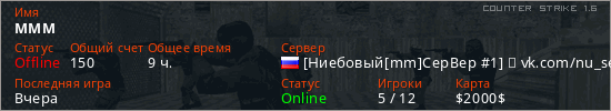 Последний раз был в сети Вчера Игрок с таким ником замечен на 33 серверах