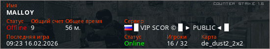 Играет на Counter Strike 1.6 сервере. Страна: РоссияПервый раз замечен 13:54 15.02.2026