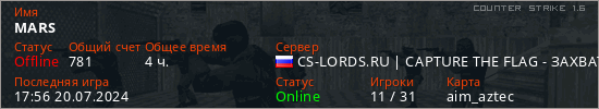 Последний раз был в сети 17:56 20.07.2024 Игрок с таким ником замечен на 31 сервере