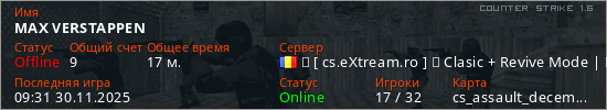 Играет на Counter Strike 1.6 сервере. Страна: РумынияПервый раз замечен 14:47 11.09.2025