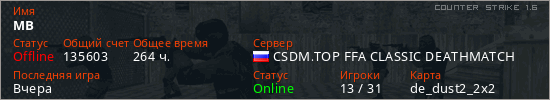 Последний раз был в сети Вчера Игрок с таким ником замечен на 28 серверах