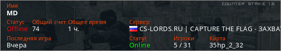 Последний раз был в сети Вчера Игрок с таким ником замечен на 25 серверах