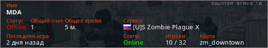 Играет на Counter Strike 1.6 сервере. Страна: РоссияПервый раз замечен 12:01 29.03.2026