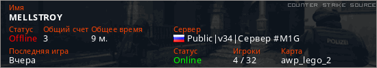 Последний раз был в сети Вчера Игрок с таким ником замечен на 26 серверах