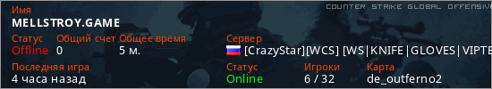Играет на Counter Strike Global Offensive сервере. Страна: РоссияПервый раз замечен 04:02 07.03.2026