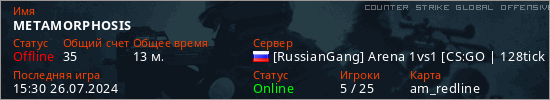 Играет на Counter Strike Global Offensive сервере. Страна: РоссияПервый раз замечен 21:54 24.07.2024