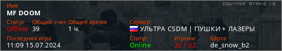 Играет на Counter Strike 1.6 сервере. Страна: РоссияПервый раз замечен 14:17 11.06.2024
