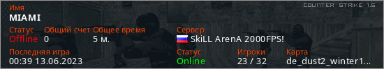 Играет на Counter Strike 1.6 сервере. Страна: РоссияПервый раз замечен 00:37 13.06.2023