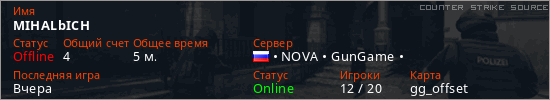 Последний раз был в сети Вчера Игрок с таким ником замечен на 3 серверах