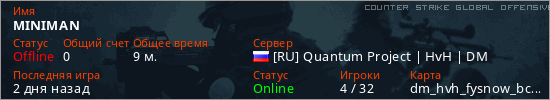 Играет на Counter Strike Global Offensive сервере. Страна: РоссияПервый раз замечен 11:24 09.04.2026