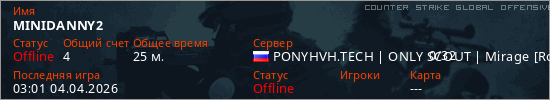 Играет на Counter Strike Global Offensive сервере. Страна: РоссияПервый раз замечен 03:02 30.03.2026