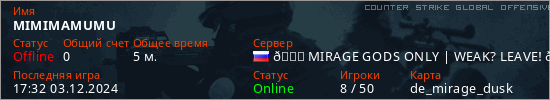 Играет на Counter Strike Global Offensive сервере. Страна: РоссияПервый раз замечен 17:28 03.12.2024