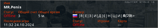 Играет на Counter Strike 1.6 сервере. Страна: РоссияПервый раз замечен 11:21 24.10.2024