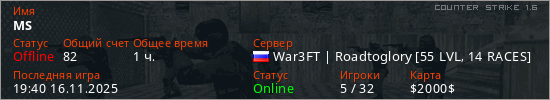 Последний раз был в сети 19:40 16.11.2025 Игрок с таким ником замечен на 25 серверах