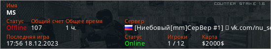 Последний раз был в сети 17:56 18.12.2023 Игрок с таким ником замечен на 25 серверах