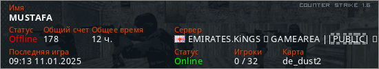 Играет на Counter Strike 1.6 сервере. Страна: ВеликобританияПервый раз замечен 08:39 16.12.2020