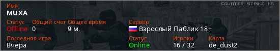 Последний раз был в сети Вчера Игрок с таким ником замечен на 16 серверах