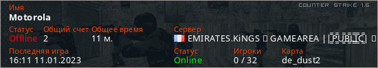 Играет на Counter Strike 1.6 сервере. Страна: ФранцияПервый раз замечен 16:03 11.01.2023