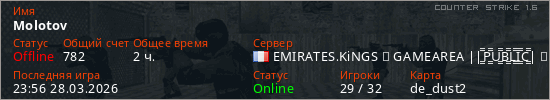 Последний раз был в сети 23:56 28.03.2026 Игрок с таким ником замечен на 11 серверах