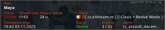 Играет на Counter Strike 1.6 сервере. Страна: РумынияПервый раз замечен 14:28 12.01.2025
