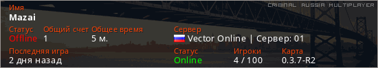 Последний раз был в сети 2 дня назад Игрок с таким ником замечен на 5 серверах