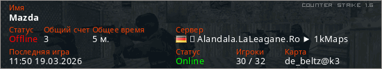Играет на Counter Strike 1.6 сервере. Страна: ГерманияПервый раз замечен 11:48 19.03.2026