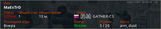 Последний раз был в сети Вчера Игрок с таким ником замечен на 15 серверах