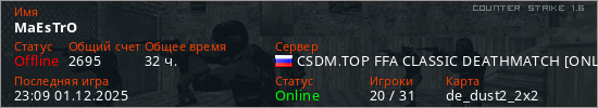 Последний раз был в сети 23:09 01.12.2025 Игрок с таким ником замечен на 9 серверах