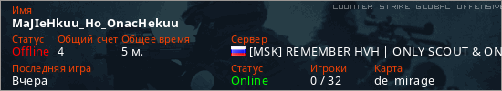 Играет на Counter Strike Global Offensive сервере. Страна: РоссияПервый раз замечен 16:17 09.12.2025