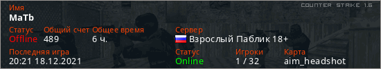Последний раз был в сети 20:21 18.12.2021 Игрок с таким ником замечен на 7 серверах