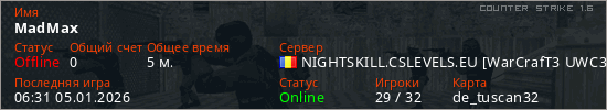 Играет на Counter Strike 1.6 сервере. Страна: РумынияПервый раз замечен 06:14 05.01.2026