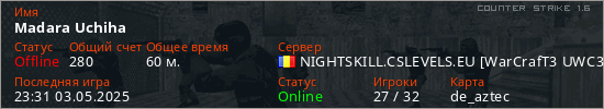 Играет на Counter Strike 1.6 сервере. Страна: РумынияПервый раз замечен 02:51 03.02.2025