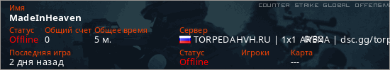 Играет на Counter Strike Global Offensive сервере. Страна: РоссияПервый раз замечен 21:41 19.04.2026