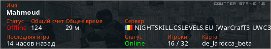 Играет на Counter Strike 1.6 сервере. Страна: РумынияПервый раз замечен 00:35 14.10.2024