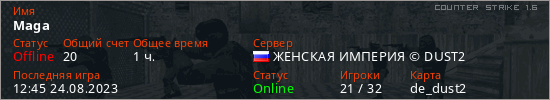 Играет на Counter Strike 1.6 сервере. Страна: РоссияПервый раз замечен 18:35 15.07.2022