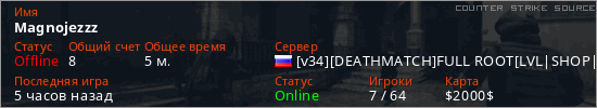 Последний раз был в сети 3 часа назад Игрок с таким ником замечен на 4 серверах
