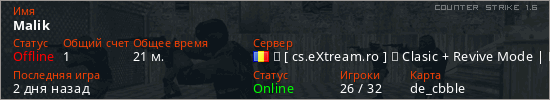 Последний раз был в сети 2 дня назад Игрок с таким ником замечен на 31 сервере