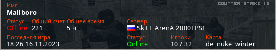 Последний раз был в сети 18:26 16.11.2023 Игрок с таким ником замечен на 17 серверах