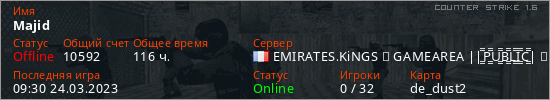 Играет на Counter Strike 1.6 сервере. Страна: ФранцияПервый раз замечен 15:34 04.03.2023