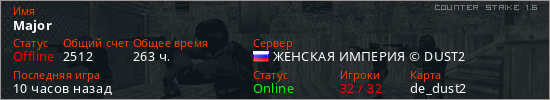 Играет на Counter Strike 1.6 сервере. Страна: РоссияПервый раз замечен 05:46 10.12.2024