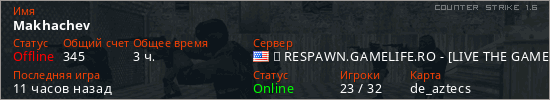 Играет на Counter Strike 1.6 сервере. Страна: СШАПервый раз замечен 23:12 01.01.2026