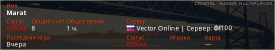 Играет на Criminal Russia Multiplayer сервере. Страна: РоссияПервый раз замечен 08:24 03.02.2026