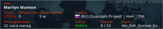 Играет на Counter Strike Global Offensive сервере. Страна: РоссияПервый раз замечен 12:11 08.04.2026