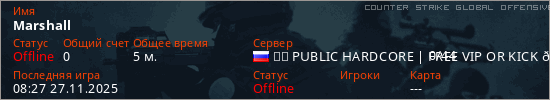 Играет на Counter Strike Global Offensive сервере. Страна: РоссияПервый раз замечен 07:56 27.11.2025