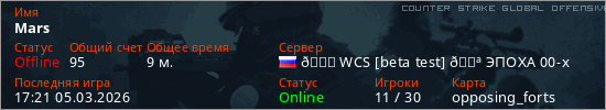 Играет на Counter Strike Global Offensive сервере. Страна: РоссияПервый раз замечен 13:08 05.03.2026