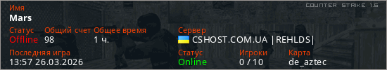 Играет на Counter Strike 1.6 сервере. Страна: УкраинаПервый раз замечен 17:22 14.03.2026