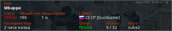 Последний раз был в сети 43 минуты назад Игрок с таким ником замечен на 22 серверах