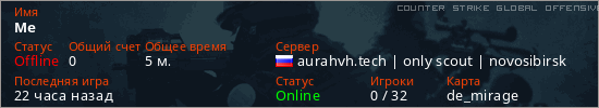 Играет на Counter Strike Global Offensive сервере. Страна: РоссияПервый раз замечен 16:51 20.04.2026