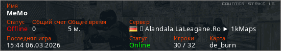 Играет на Counter Strike 1.6 сервере. Страна: ГерманияПервый раз замечен 15:33 06.03.2026