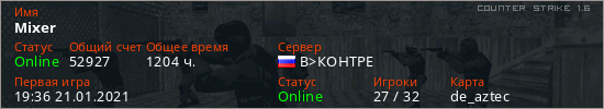 Играет на Counter Strike 1.6 сервере. Страна: РоссияПервый раз замечен 19:36 21.01.2021